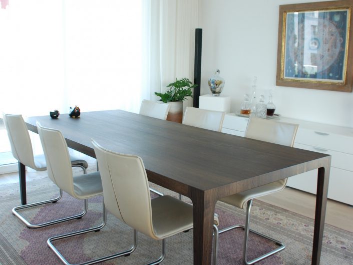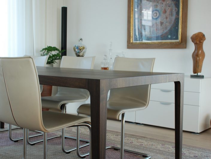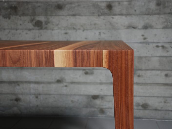 Tisch Brava by Reto Weiss. Massivholztisch für Wohn- und Arbeitsbereich, Blattstärke 55mm, Beine verjüngt, in diversen Holzarten lieferbar, geölt oder lackiert.